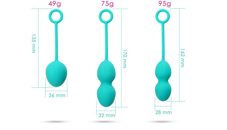 Bộ bóng Svakom Nova gồm 3 trọng lượng tăng dần, phù hợp cho từng giai đoạn tập luyện cơ âm đạo từ cơ bản đến nâng cao.