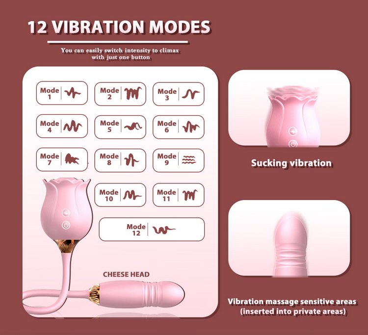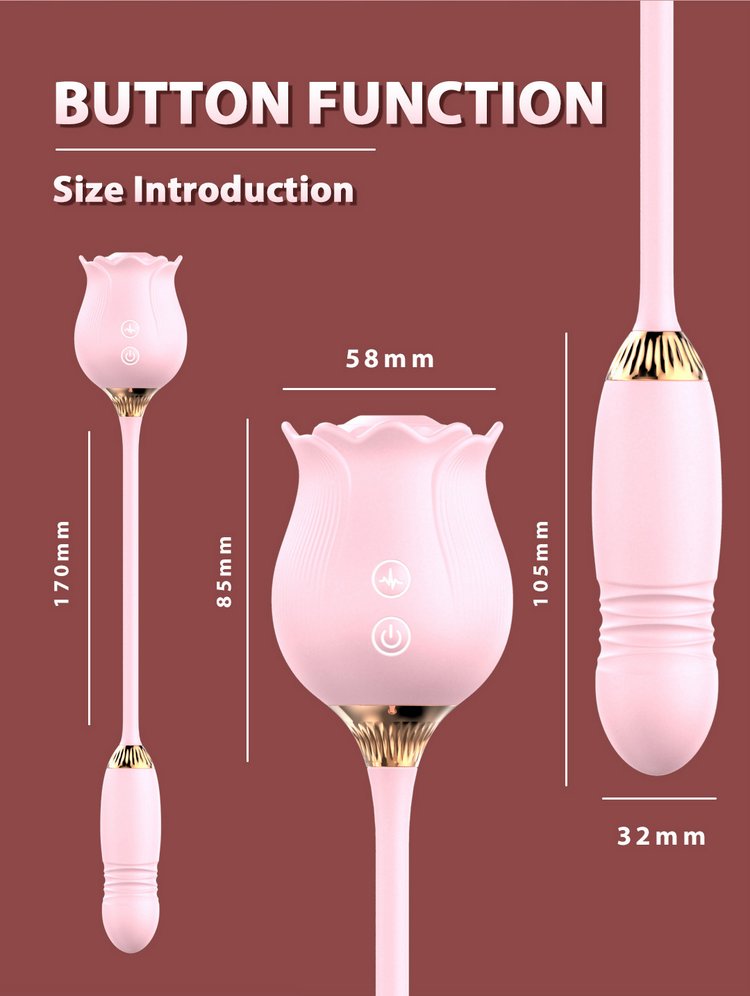 Phần thân hoa hồng được thiết kế tinh xảo, mềm mịn như thật, tạo lực hút nhịp nhàng mô phỏng cảm giác “mút – liếm – bú” cực chân thật. Đầu trứng rung thụt có rãnh nổi, ma sát mạnh vào thành âm đạo, giúp khoái cảm tăng nhanh và đạt cực khoái dễ dàng hơn.