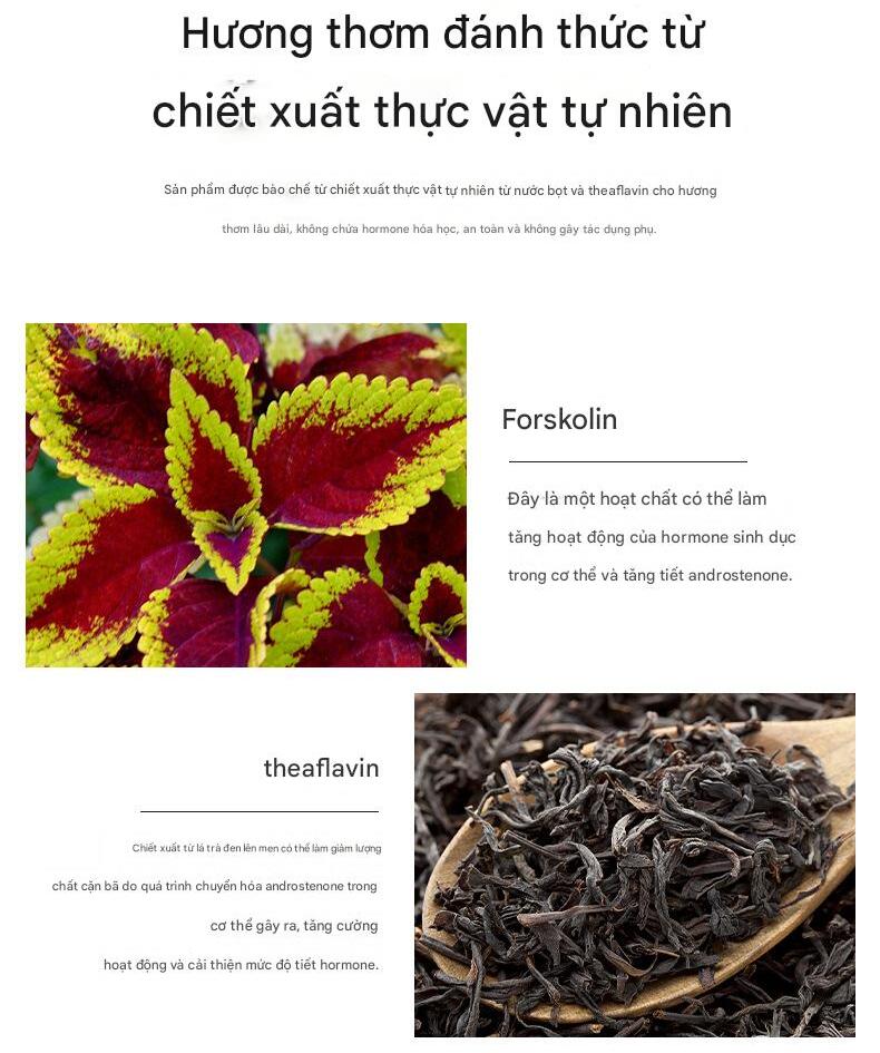 Thành phần chính: Sensfeel™ for Him, Forskolin, chiết xuất trà xanh, glycerin, niacinamide…