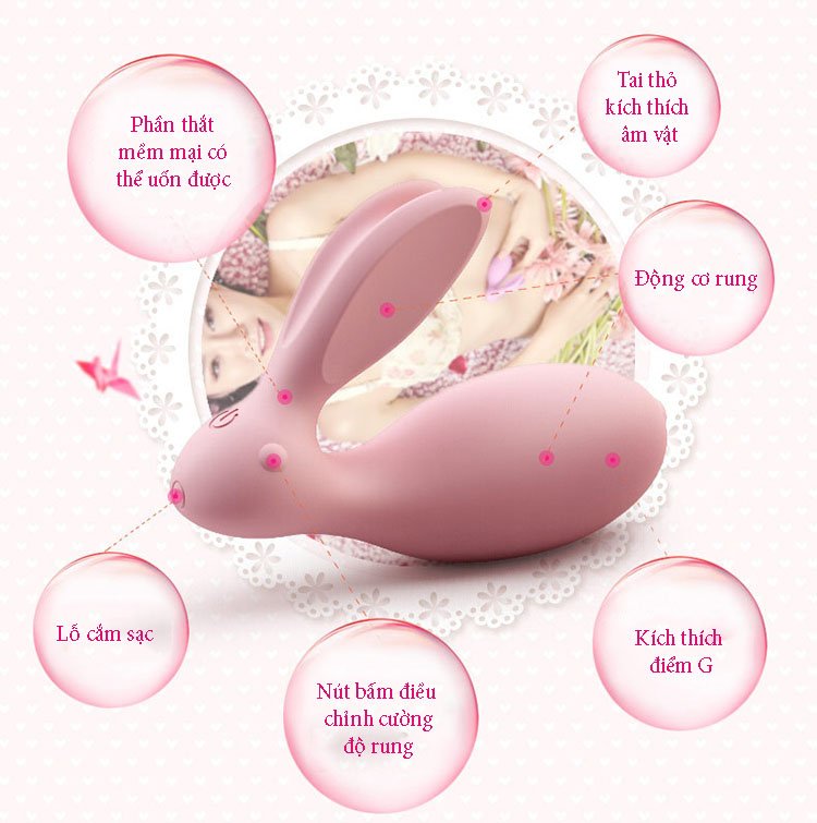 Trứng rung điểm G hình thỏ làm từ silicone y tế cao cấp, chống nước 100%, pin sạc USB tiện lợi và an toàn cho người dùng.